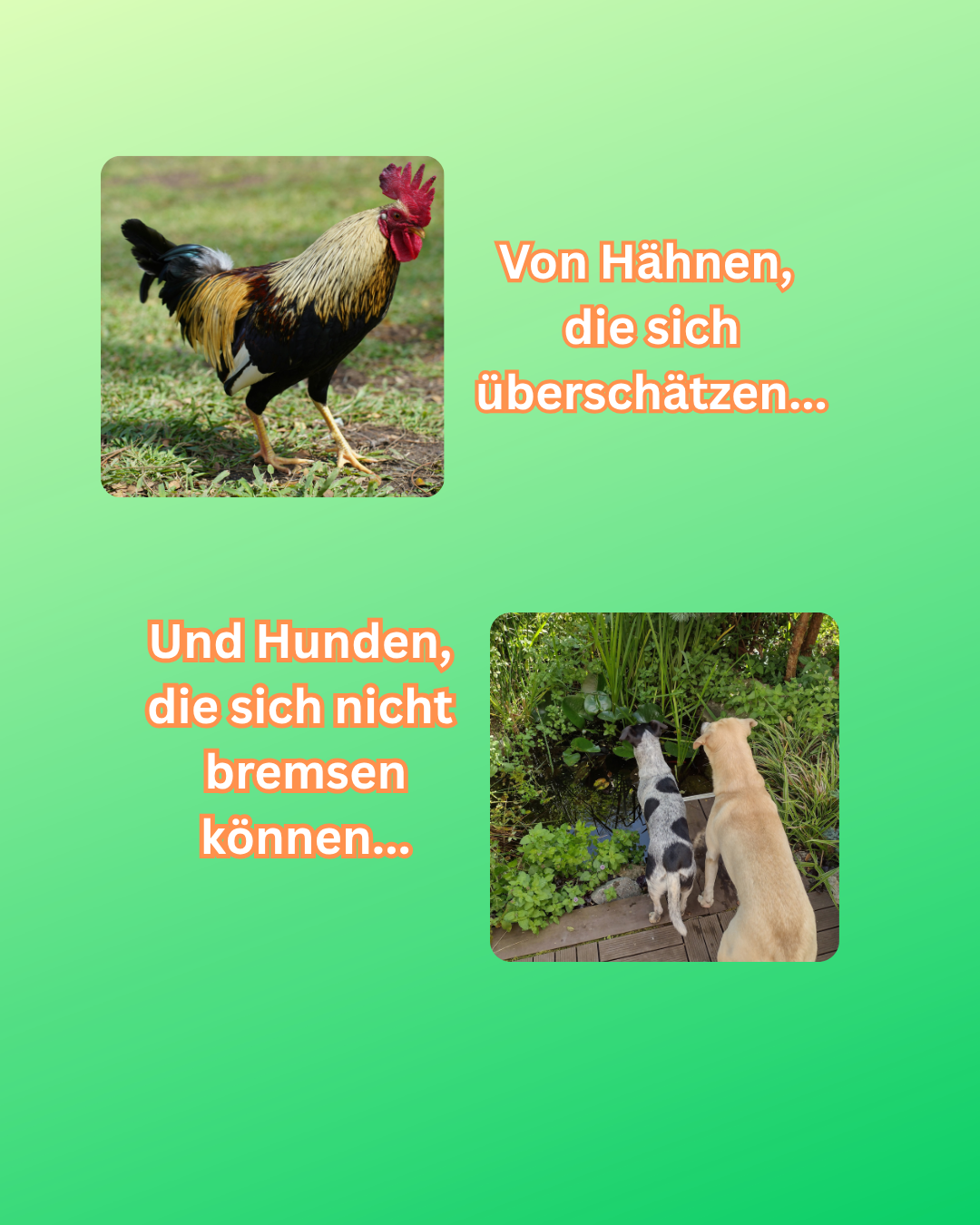 Von Hähnen, die sich überschätzen und Hunden, die sich nicht bremsen können